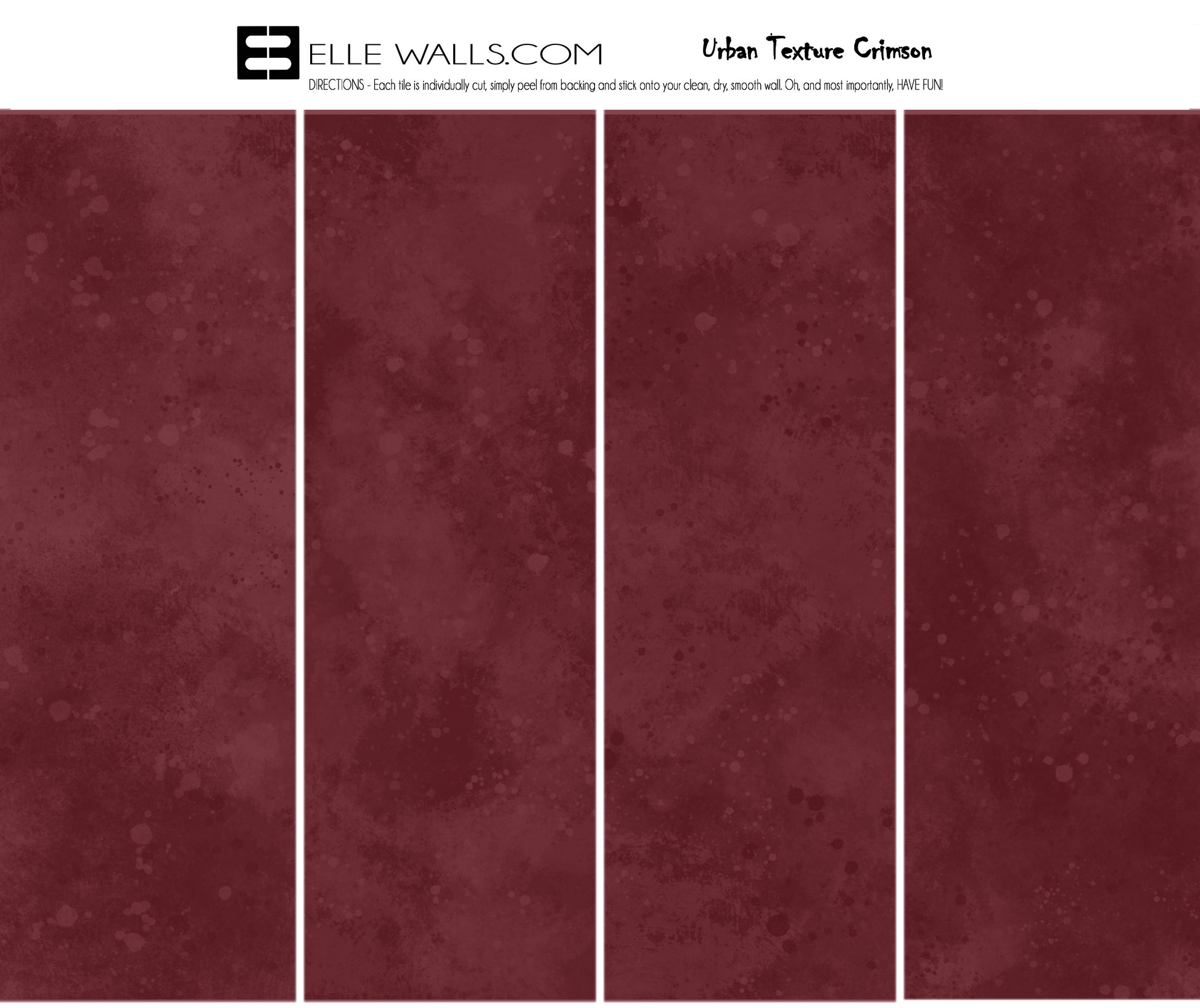 Our Urban Textured Wallpaper Tiles measure 36 x 12 inches. They are textured, heavy duty 9 mil vinyl peel and stick wallpaper tiles. They are very easy to apply and fun to do. They come in 24 different trendy colors and there are 4 distinct textured patterns per color. You can mix colors to obtain your own designer look. They can be applied vertically or horizontally and come in removable or more permanent adhesion.