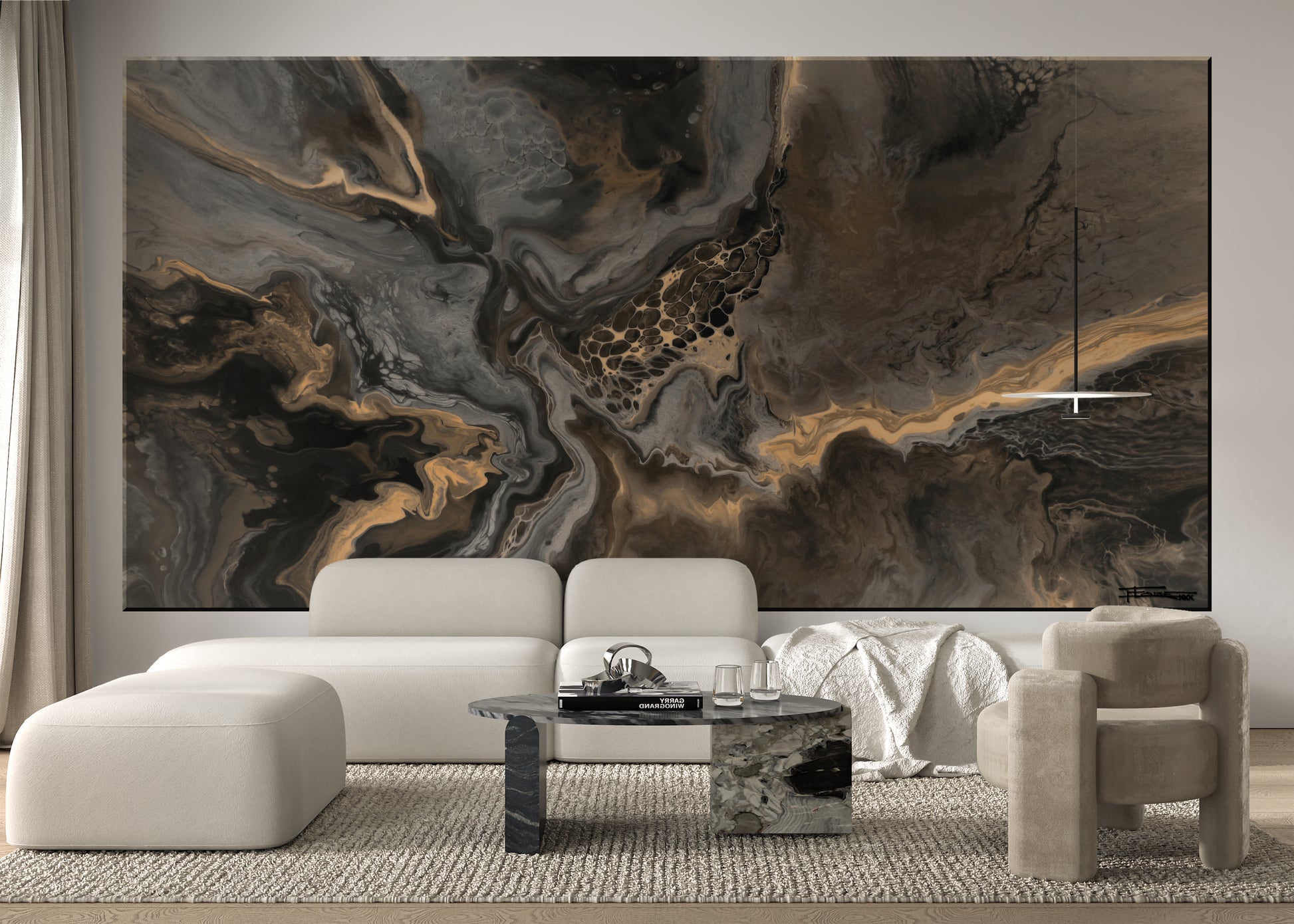 These massive decals, abstract art murals, are a design and decor game changer. You can change the whole look of your space without having to paint or hang wallpaper. It's so easy! Excellent for rental units! Change the look of your room every year for a very minimal price. Sizes up to 12 feet wide x almost 5 feet tall in one single piece!
