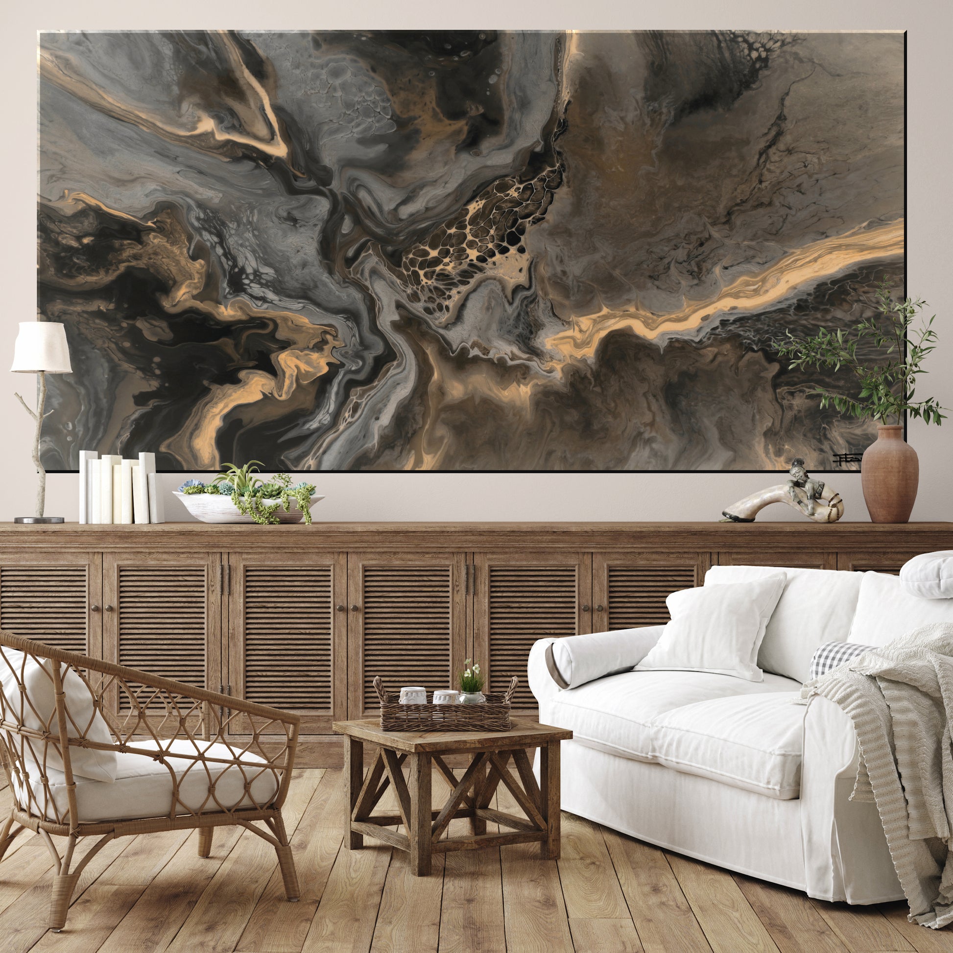 BLACK AND TAN - Easy to hang giant sized wall art decal! Peel and Stick, Removable. Why spend a fortune on fine art when you can get these oversized, roughly textured, heavy gauge 11mil vinyl decals for a fraction of the price of a stretched canvas piece. They are printed with a beveled shadowed edge as shown to appear as a 3D piece. They easily remove from their backing to be adhered to your smooth finished wall. Great way to create a gallery look in your own space. They can be removed from the wall with no damage, great for rental units. It's a whole lotta look for a lot less money!
