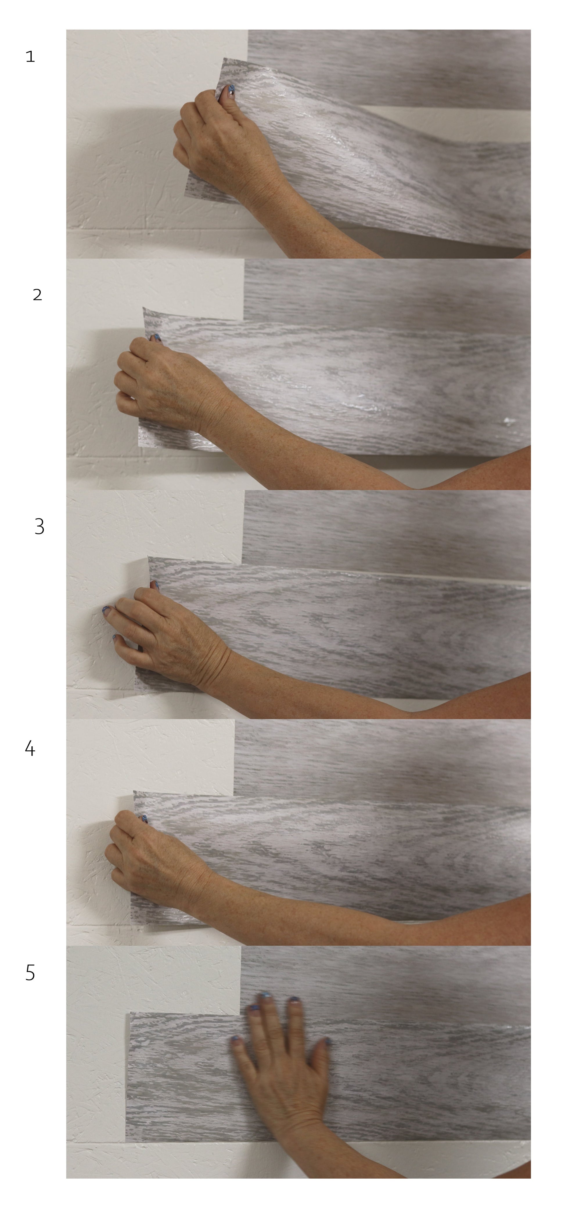 There are 9 different textured wood grained planks in each color for an authentic look. Easy to apply. Fun to do.