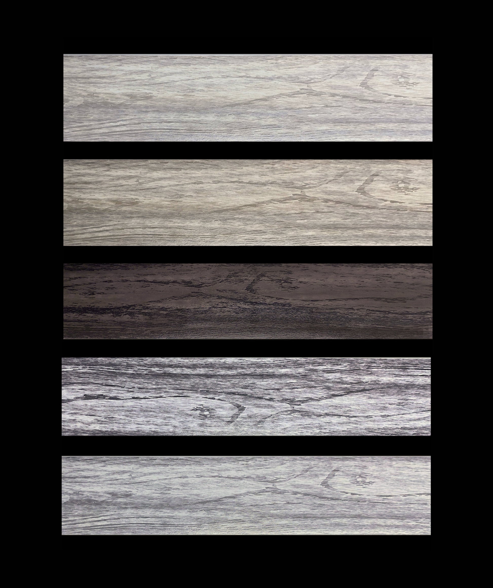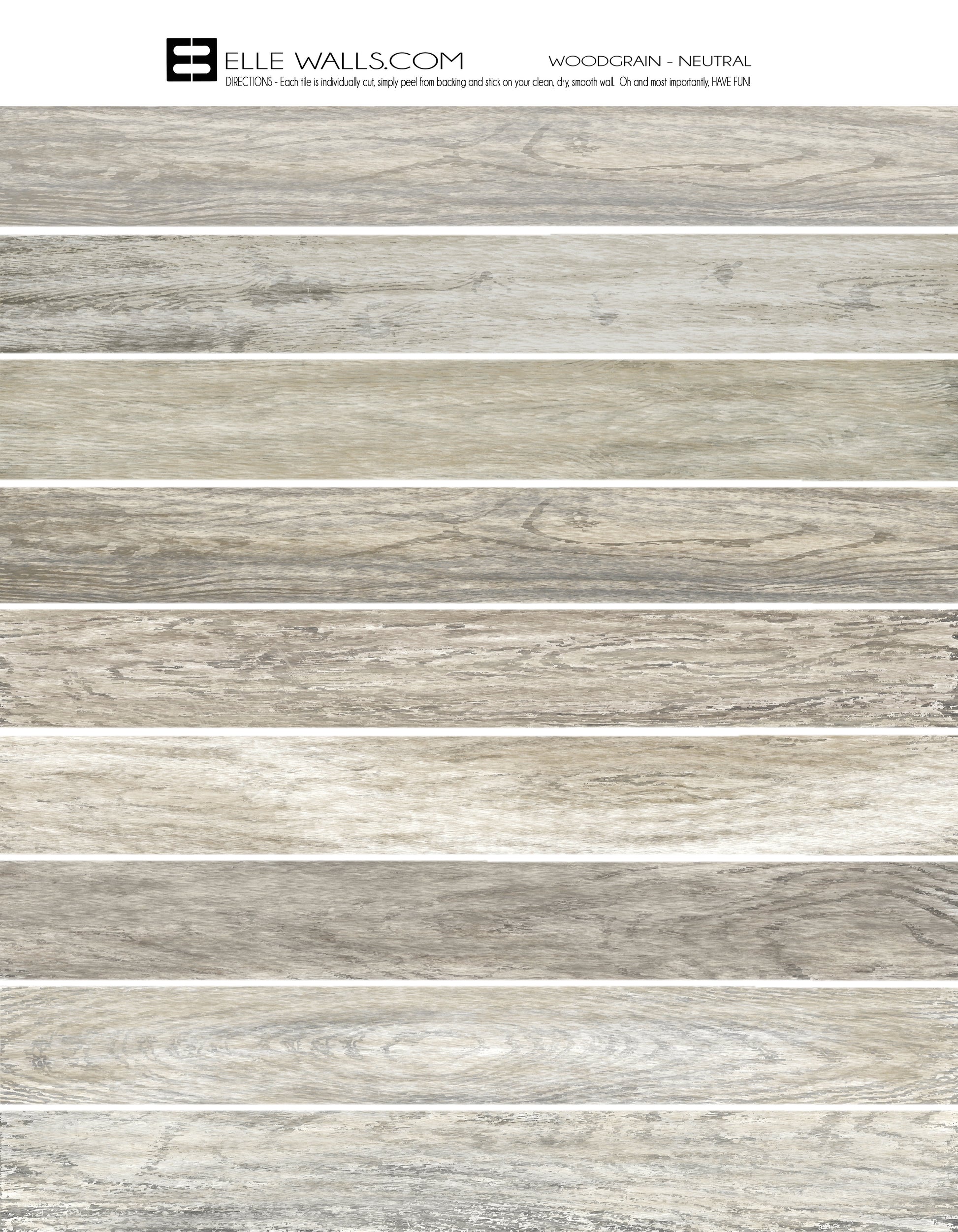 There are 9 different textured wood grained planks in each color for an authentic look. Easy to apply. Fun to do.
