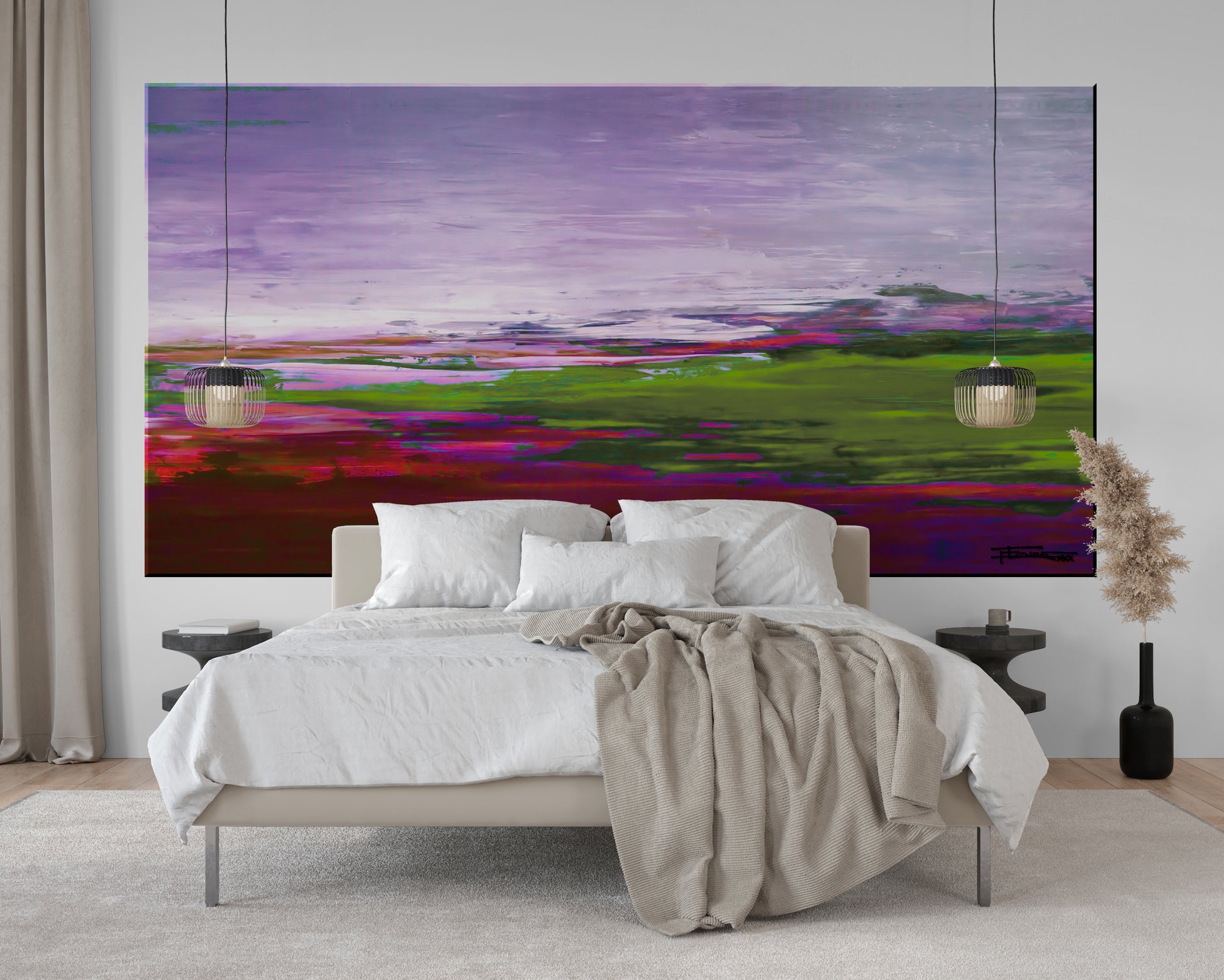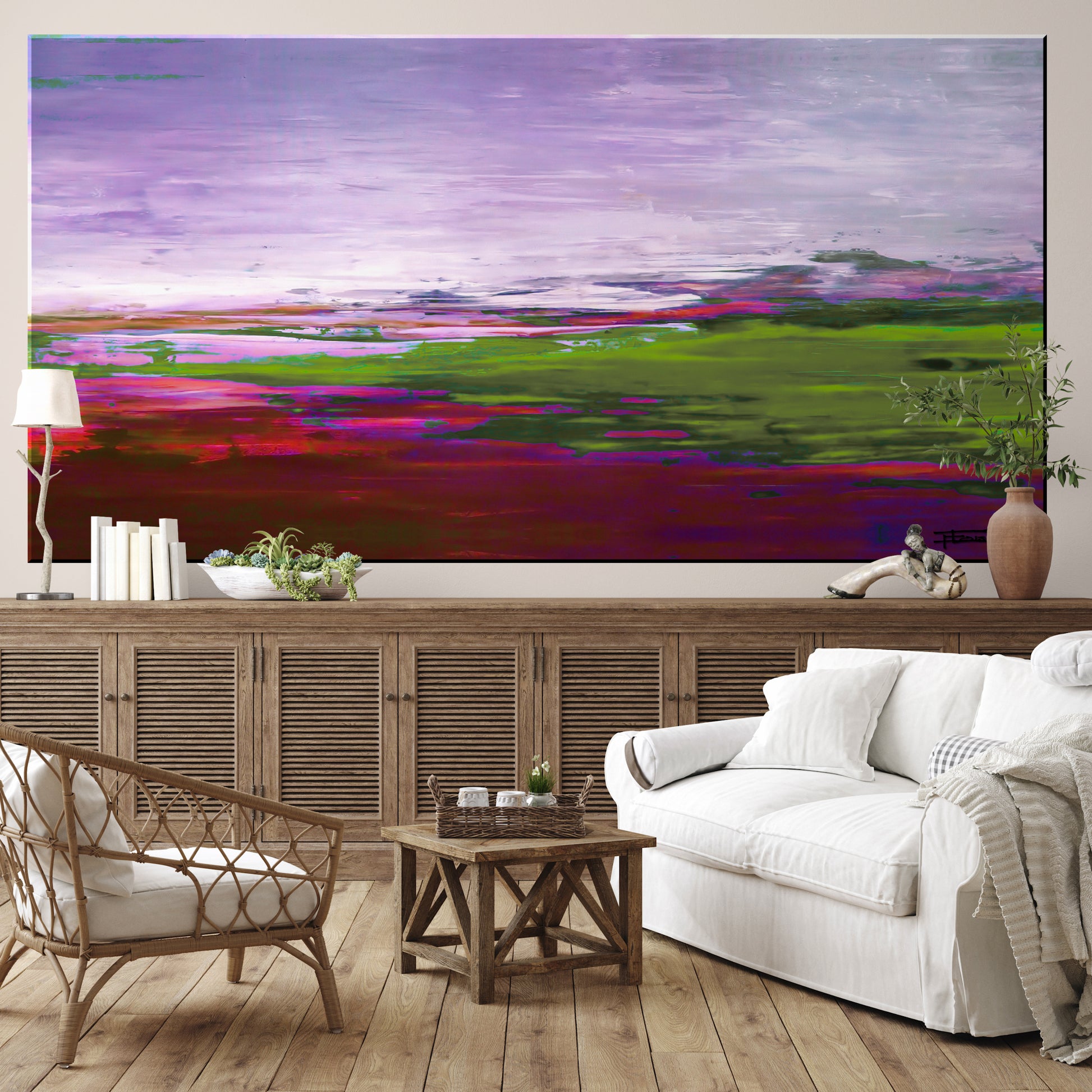 SPRING FIELDS - Easy to hang giant sized wall art decal! Peel and Stick, Removable. Why spend a fortune on fine art when you can get these oversized, roughly textured, heavy gauge 11mil vinyl decals for a fraction of the price of a stretched canvas piece. They are printed with a beveled shadowed edge as shown to appear as a 3D piece. They easily remove from their backing to be adhered to your smooth finished wall. Great way to create a gallery look in your own space. They can be removed from the wall with no damage, great for rental units. It's a whole lotta look for a lot less money!